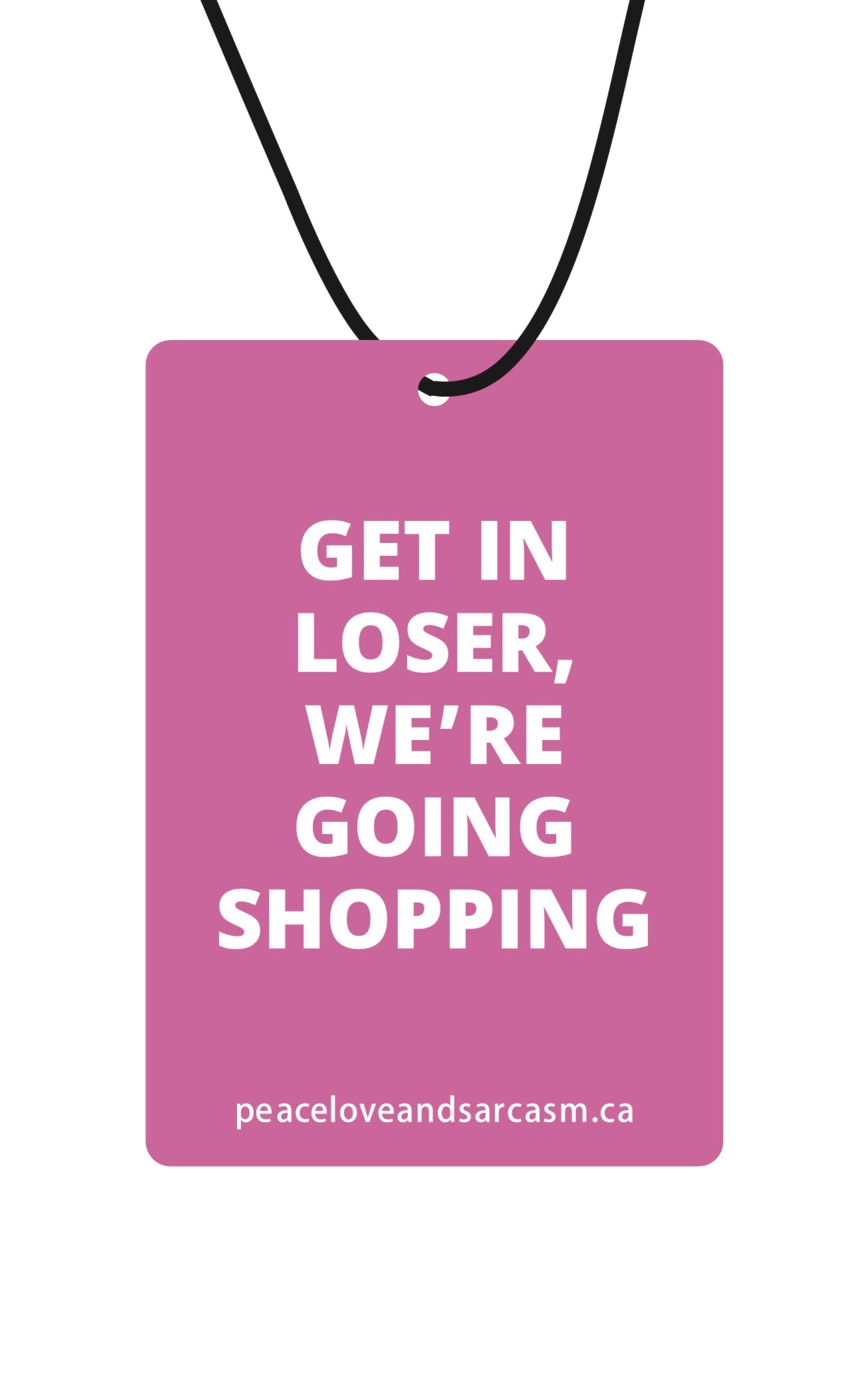 Your car just became the ultimate shopping buddy with this iconic, sassy air freshener. "Get In Loser, We're Going Shopping" is the perfect accessory for retail therapy enthusiasts and friends who live for a good mall day. Keep your vehicle smelling amazing while broadcasting your love of deals, fashion, and quality time with your crew. It's fun, it's fabulous, and it sets the tone for every adventure. Hang it proudly and let passengers know they're in for a good time. Because the best trips are the ones where you're surrounded by people who get your priorities straight.